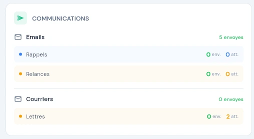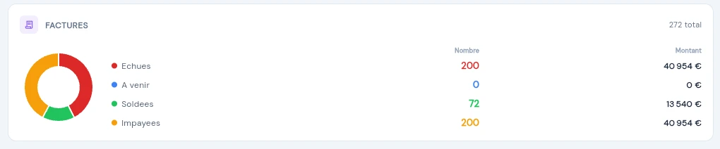 Cette section présente une synthèse financière de l’ensemble de vos créances déclarées réparties selon le type de clients ( particulier/ professionnel)