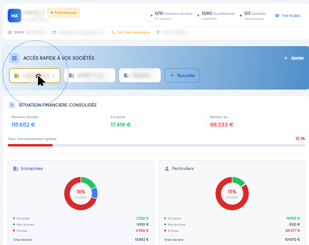Depuis votre tableau de bord, sélectionnez la société concernée.