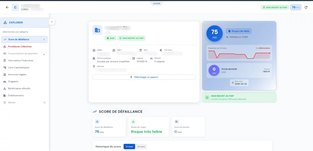 Cette fonctionnalité vous aide à anticiper les risques et sécuriser vos relations commerciales en accédant aux informations disponibles sur vos partenaires.