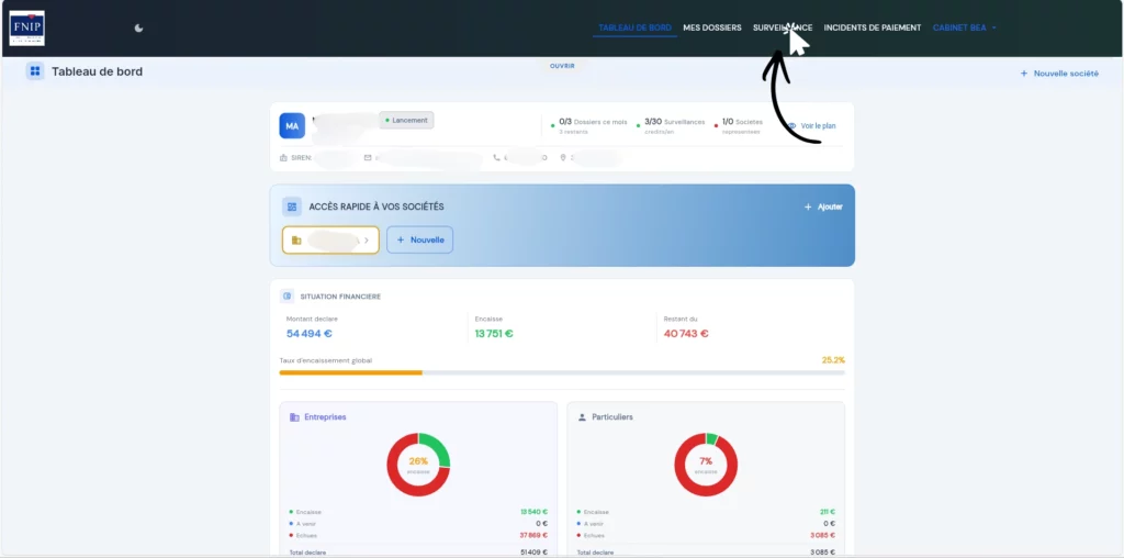 Depuis votre interface FNIP, cliquez sur « Surveillance » dans le menu principal en haut de la plateforme.